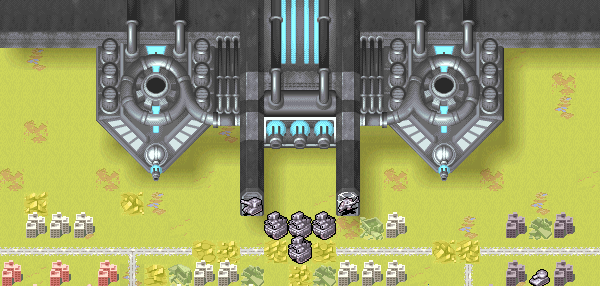 Two tiles, one on each side of the three central laser cannons, can produce any unit with no cost, including Seaplanes. The player cannot move on top of these tiles, but can siege or surround them to prevent Caulder from freely creating advantageous units such as Fighters and Seaplanes.